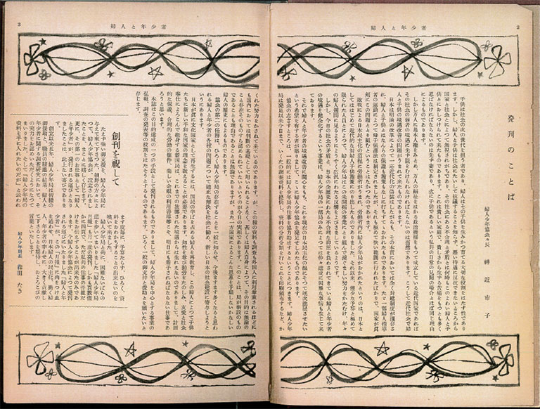 - 婦人の地位向上並びに勤労婦人及び青少年の福祉の増進を図ることを目的として、労働省婦人少年局唯一の外郭機関「婦人少年協会」として発足。主たる事業として広報誌『婦人と年少者』を発行し、婦人少年行政の浸透と啓発に寄与することを目指した。